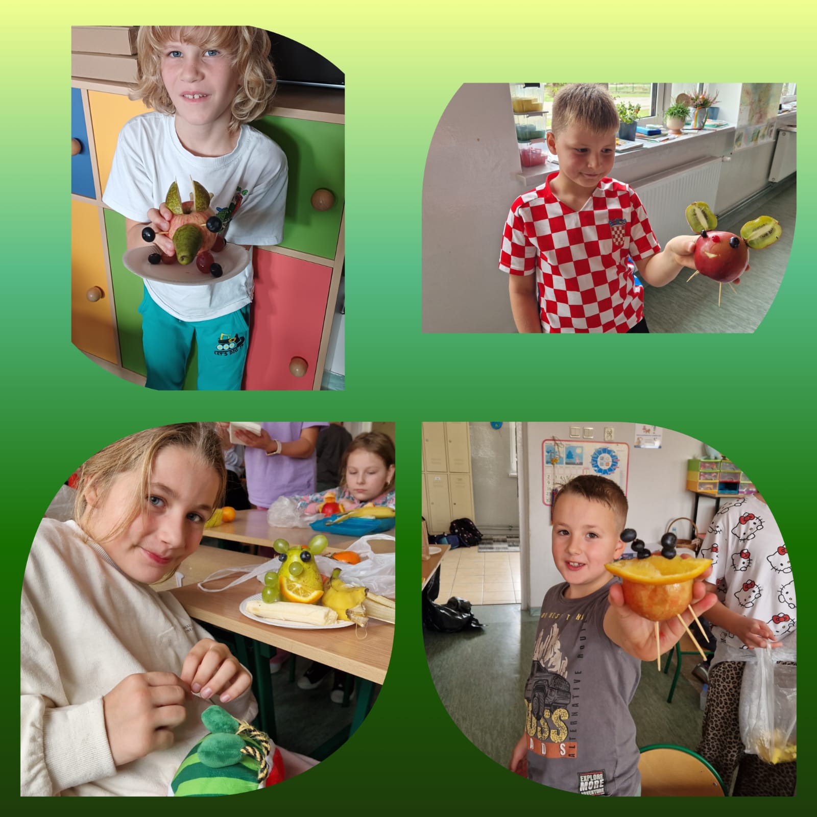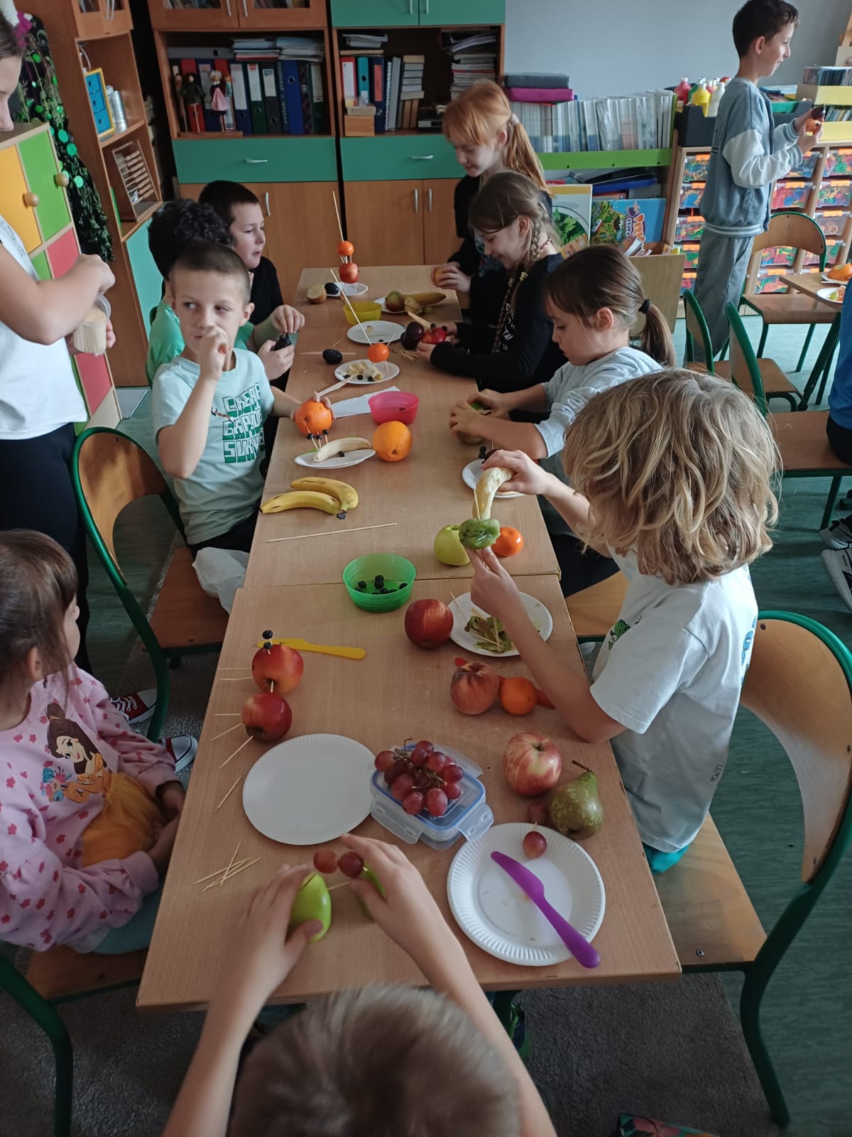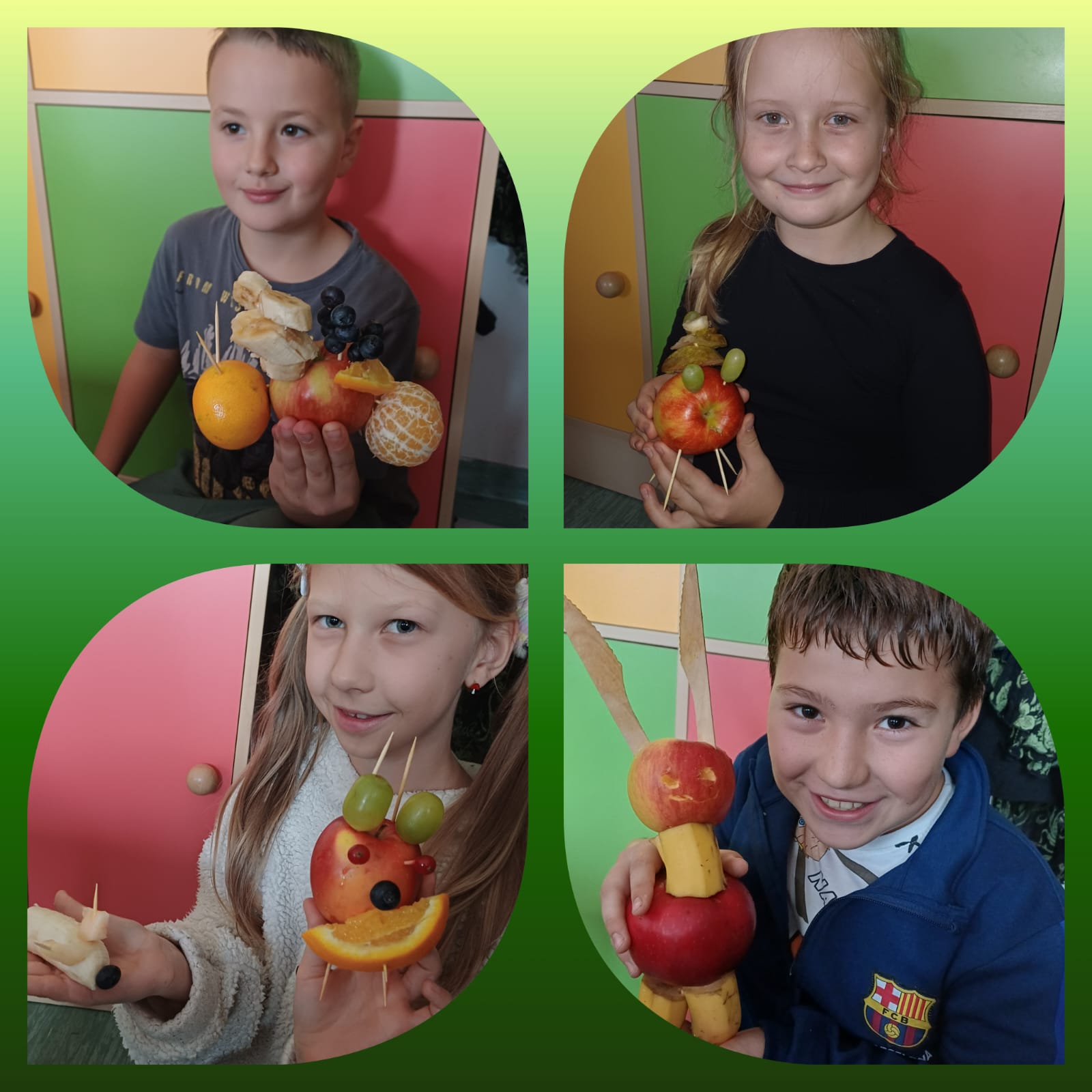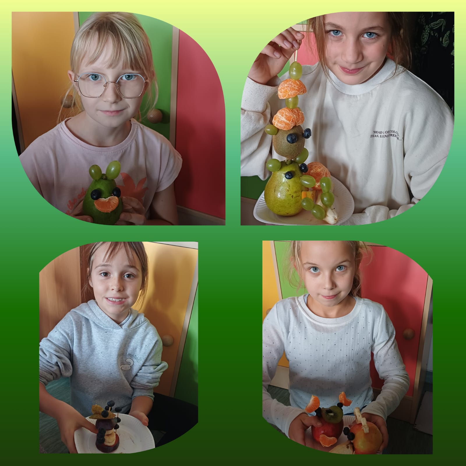 21 października podczas zajęć na świetlicy szkolnej uczniowie wykonywali owocowe zwierzątka z różnych owoców. Dzieci wykazały się pomysłowością i zaangażowaniem. Wszystkie projekty smakowały znakomicie.