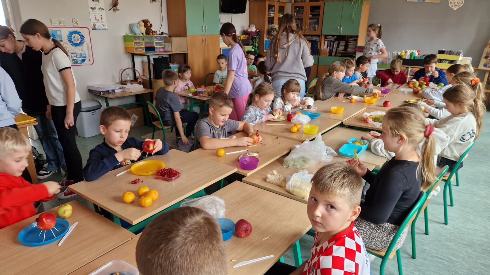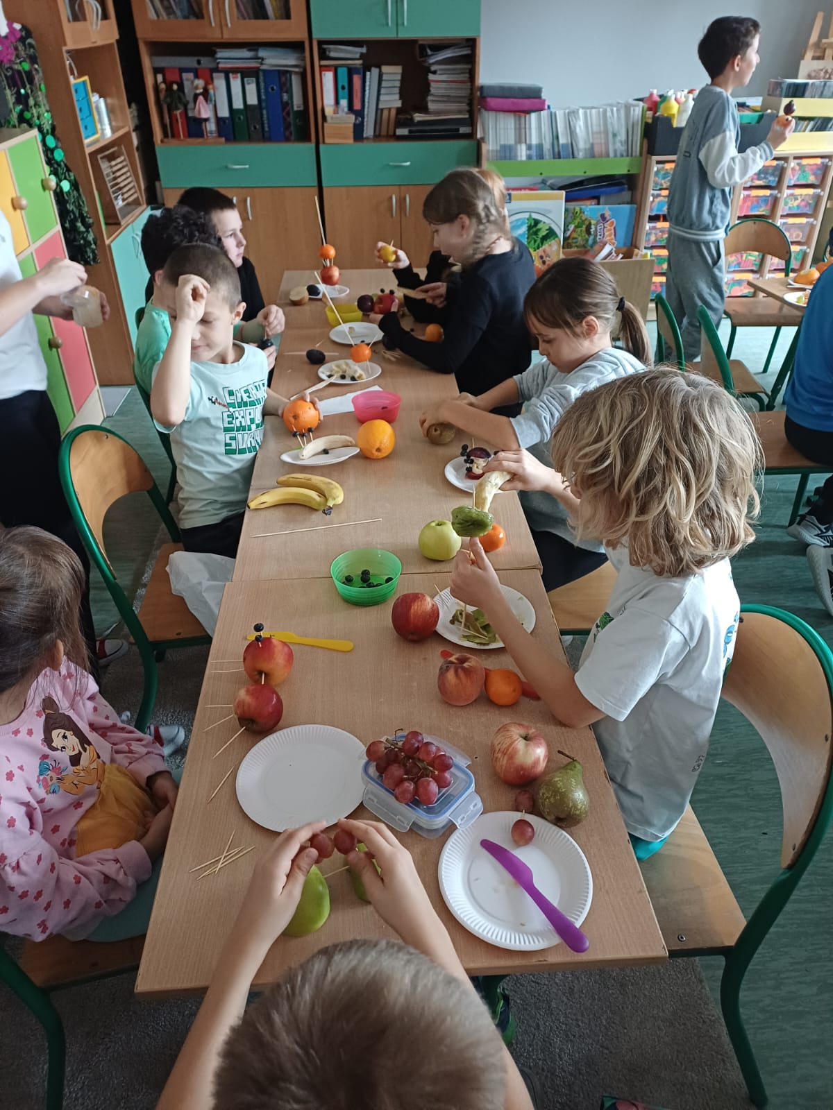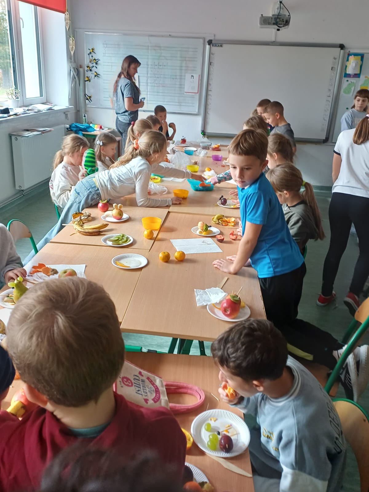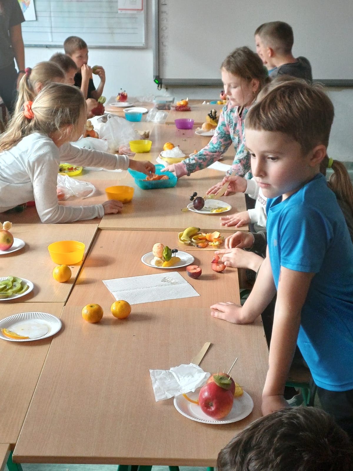 21 października podczas zajęć na świetlicy szkolnej uczniowie wykonywali owocowe zwierzątka z różnych owoców. Dzieci wykazały się pomysłowością i zaangażowaniem. Wszystkie projekty smakowały znakomicie.